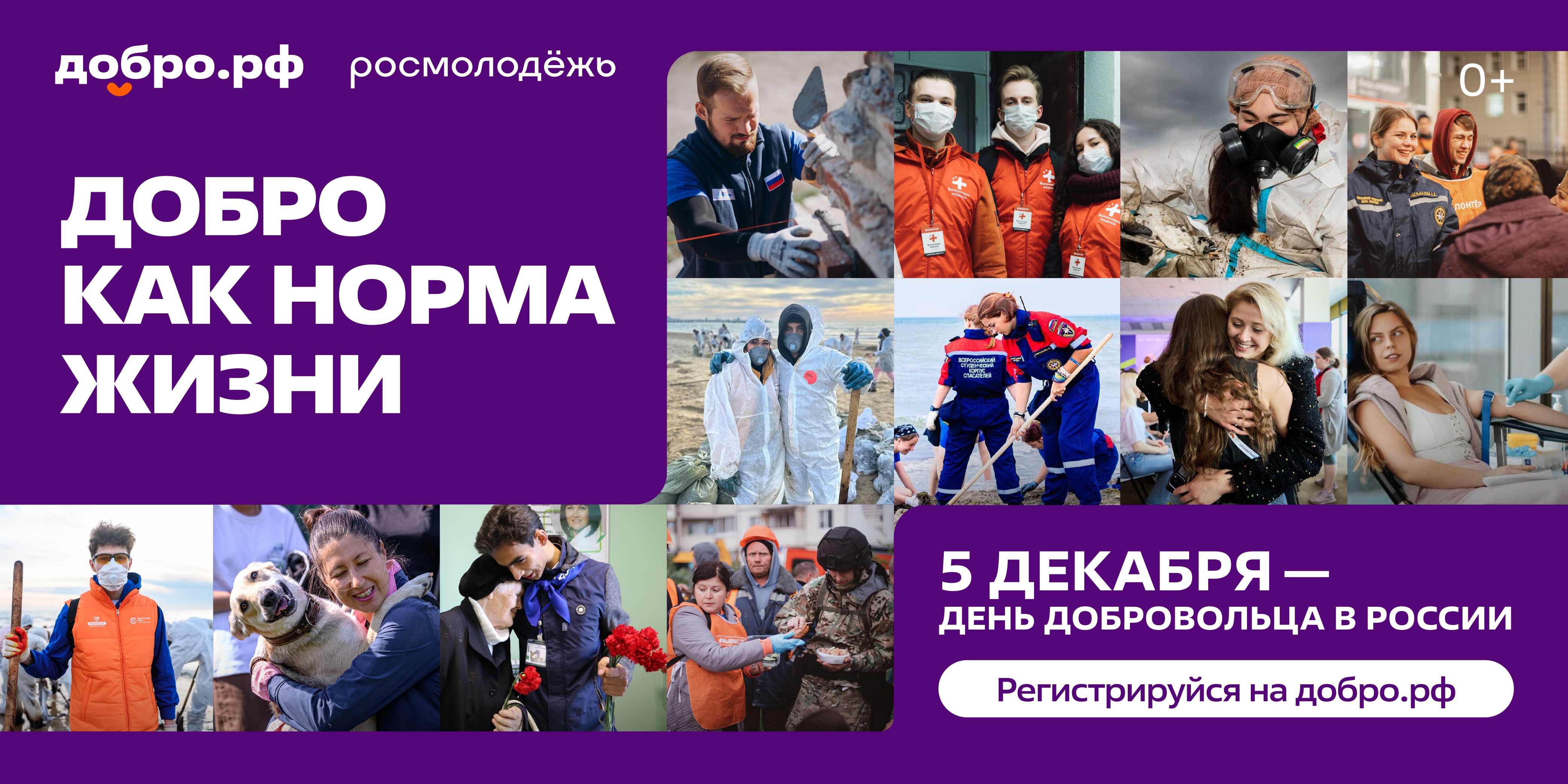 5 декабря – День добровольца в России! Повод сделать добро своей нормой на ДОБРО.РФ (https://dobro.ru/)